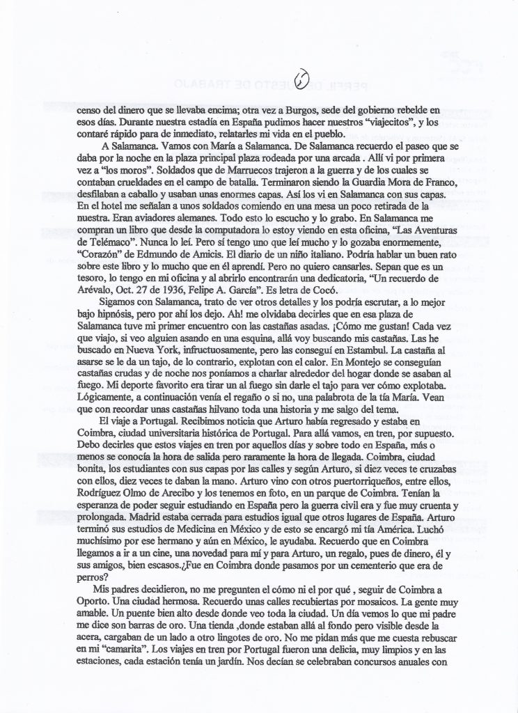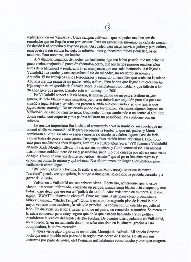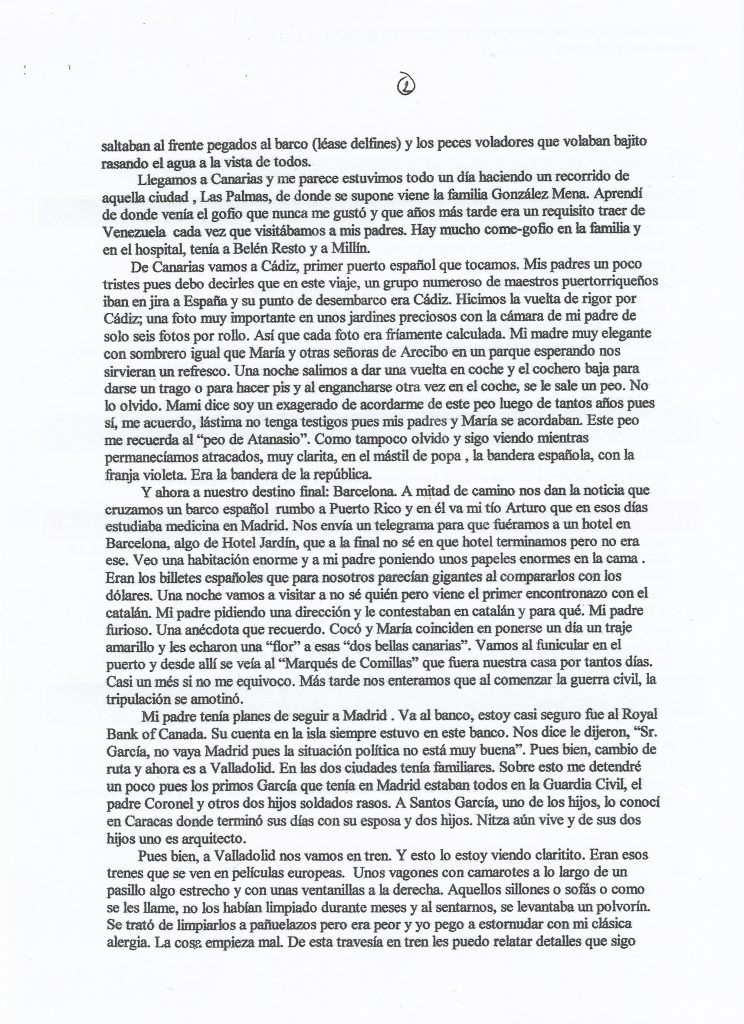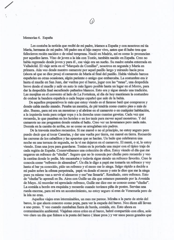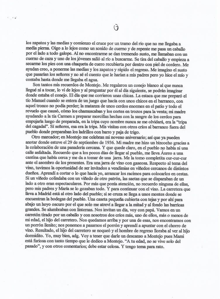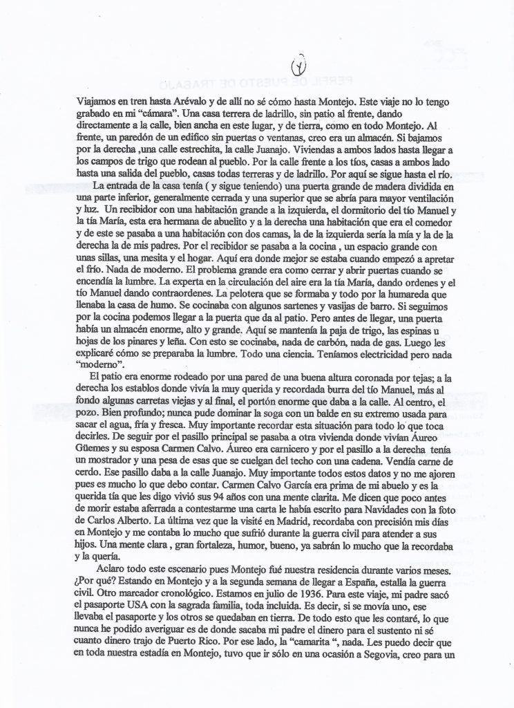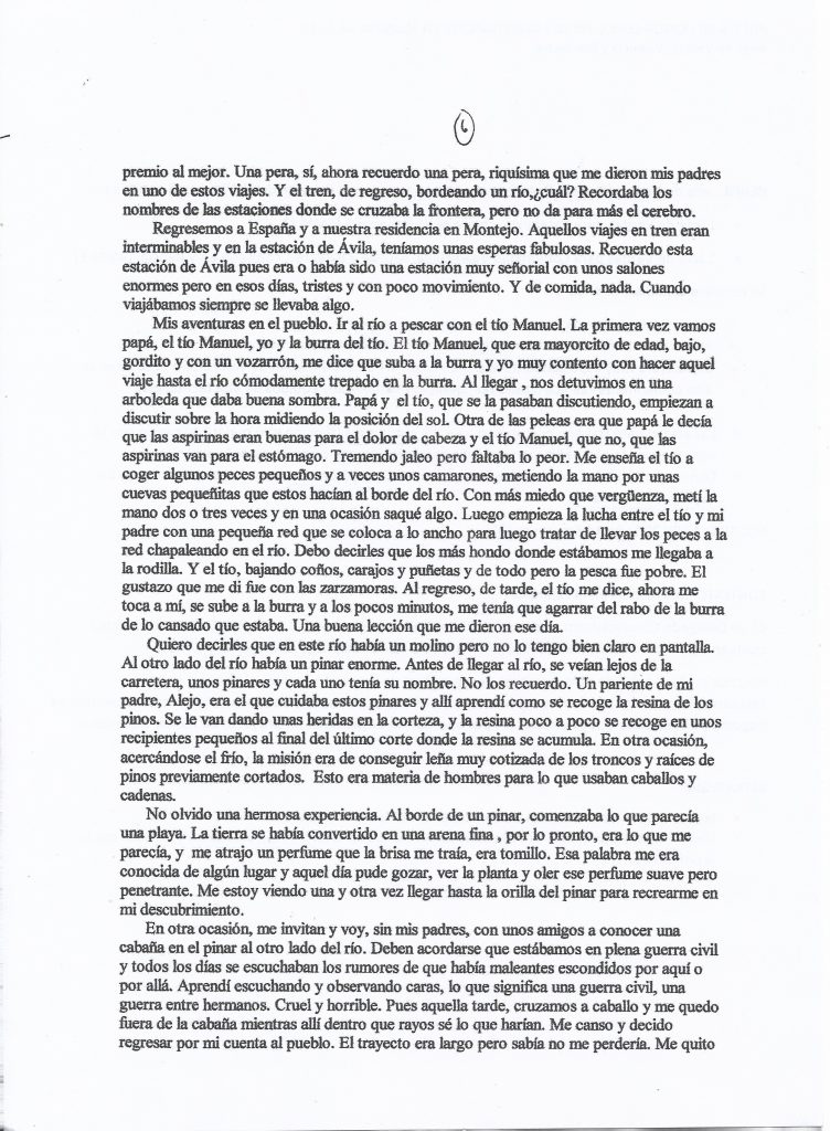 Su primer viaje a España, visitando Montejo, coincide con el inicio de la Guerra Civil. Son siete páginas en las que describe momentos, lugares y familia.
