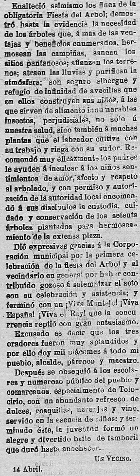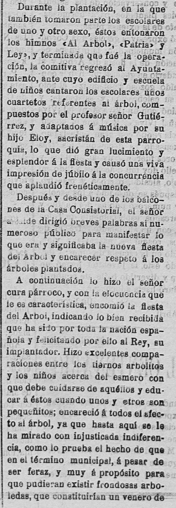 Mi tío Celestino, que nació en 1917, en las noches de verano sentados en la puerta de su casa siempre recordaba la fiesta del árbol por lo que posiblemente se siguió celebrando alguna vez más. Felicísimo Ramos también me contó que conservaba una canción escrita a mano por su madre y que cantaban en dicha fiesta.