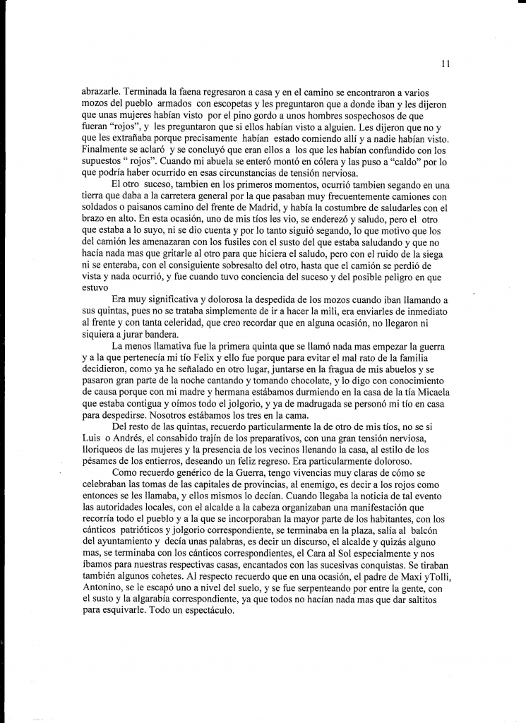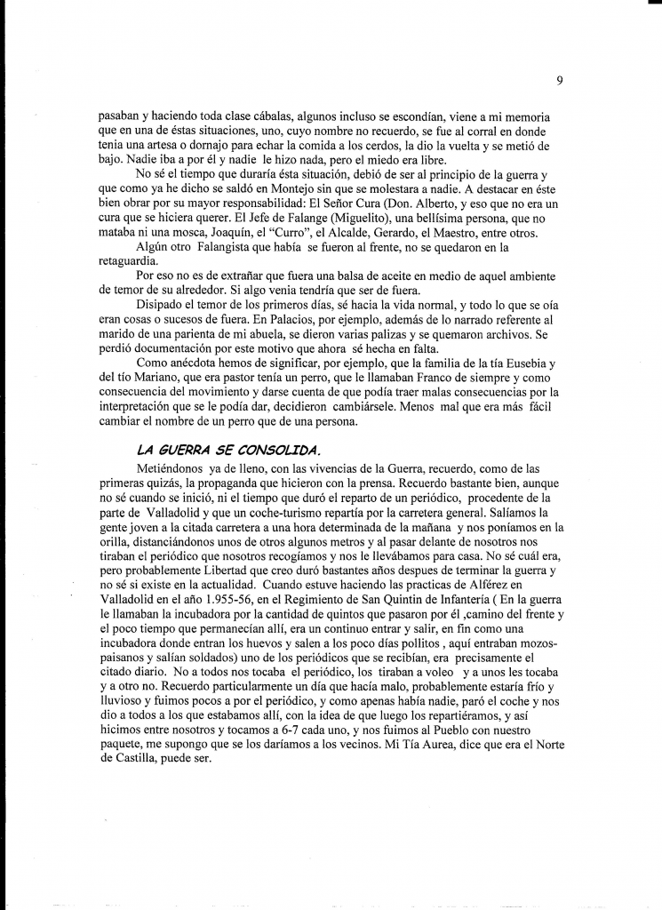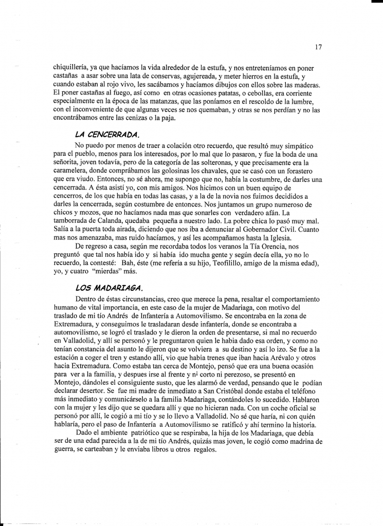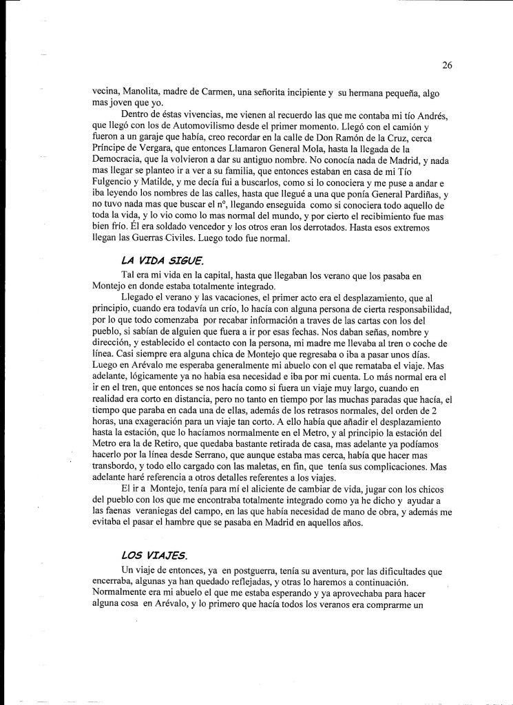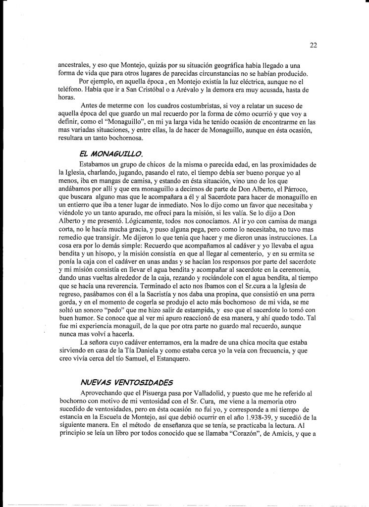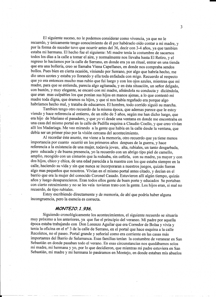 Como continuación al último relato, hoy comienzo con la inserción de los primeros folios que cuentan la historia que vivió otro niño en Montejo en los años de la Guerra Civil y, que como el propio cronista manifiesta, su intención es plasmar por escrito sus vivencias, recoger viejos recuerdos para que quede constancia de ciertas costumbres, muchas de las cuales seguramente sean desconocidas por las nuevas generaciones.