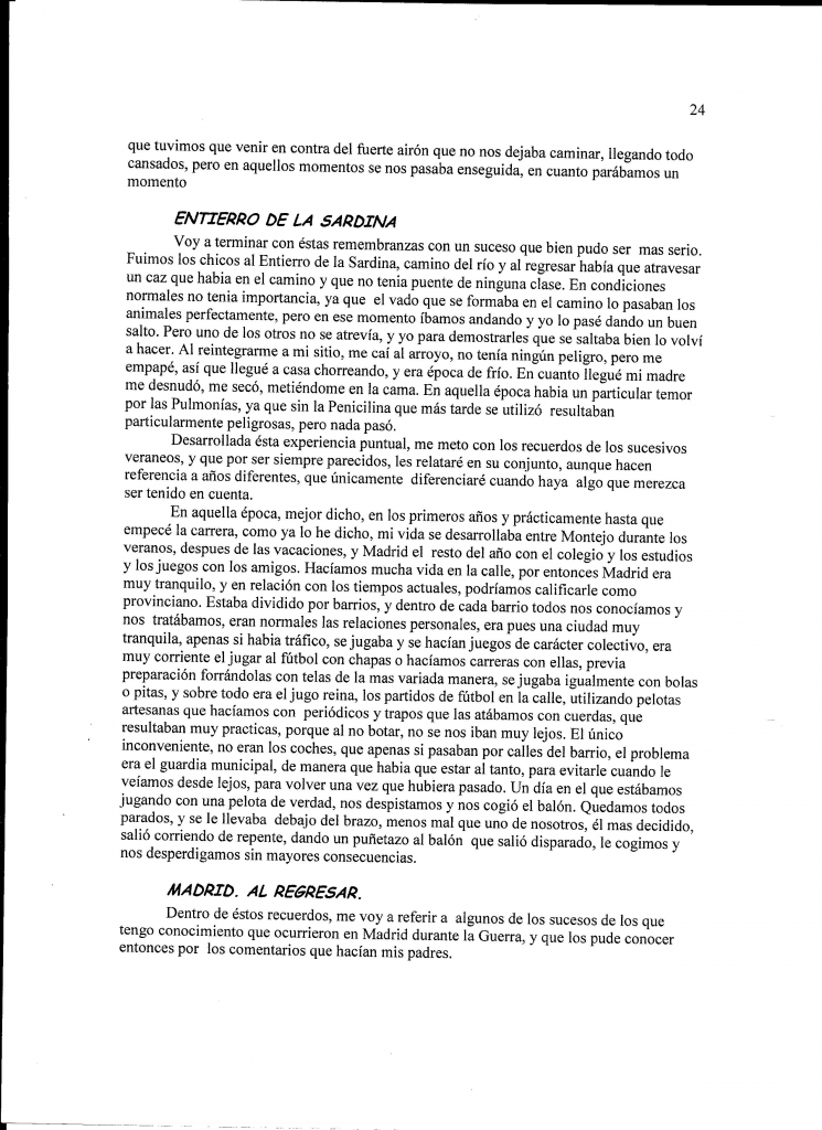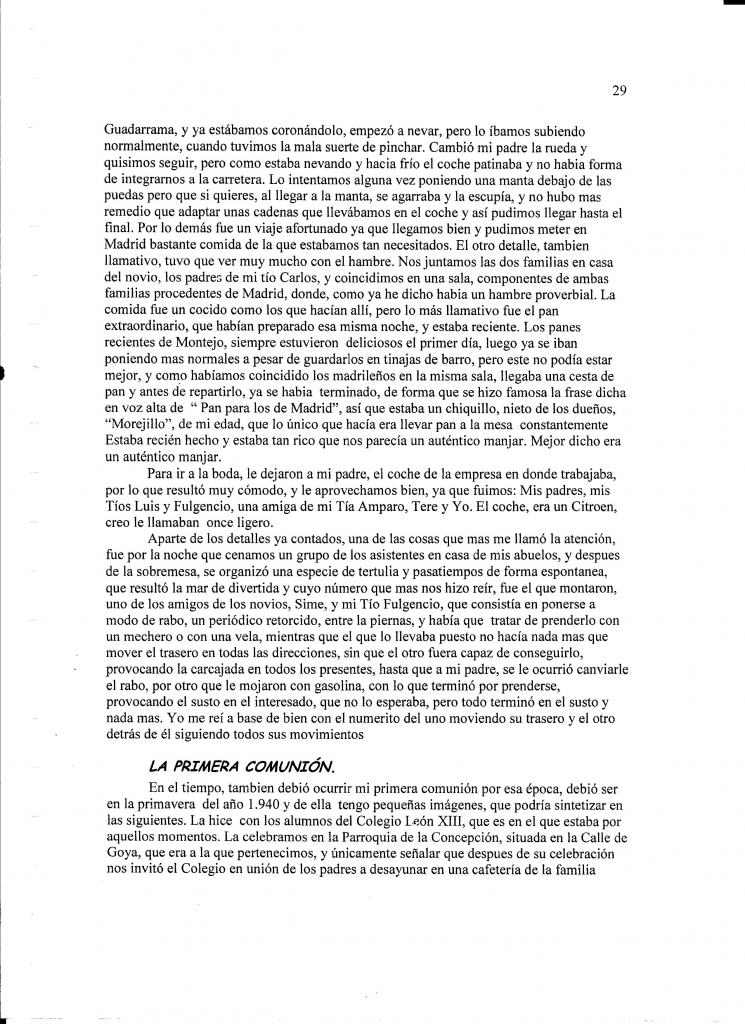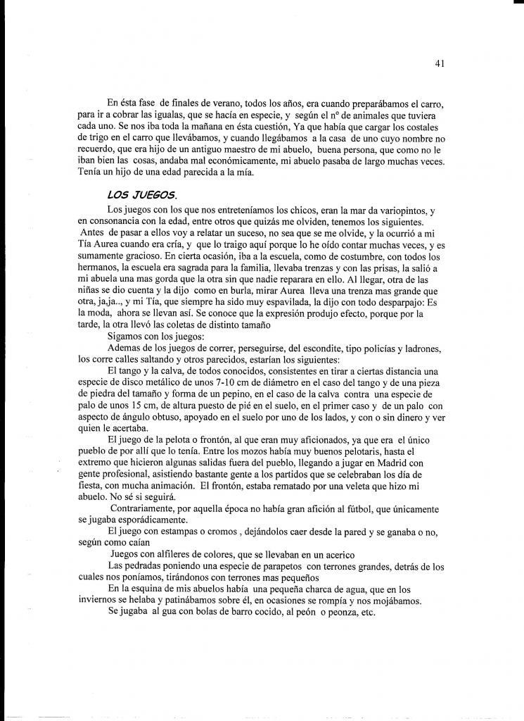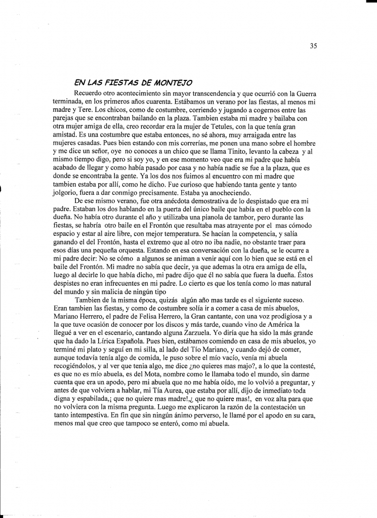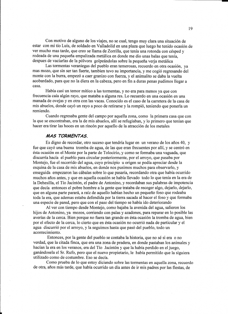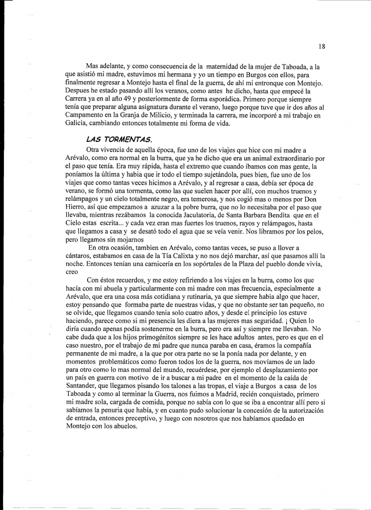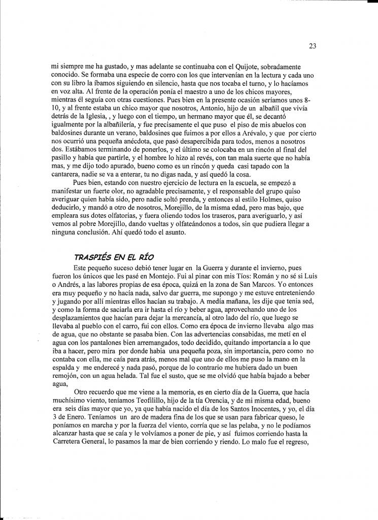 Como continuación al último relato, hoy comienzo con la inserción de los primeros folios que cuentan la historia que vivió otro niño en Montejo en los años de la Guerra Civil y, que como el propio cronista manifiesta, su intención es plasmar por escrito sus vivencias, recoger viejos recuerdos para que quede constancia de ciertas costumbres, muchas de las cuales seguramente sean desconocidas por las nuevas generaciones.