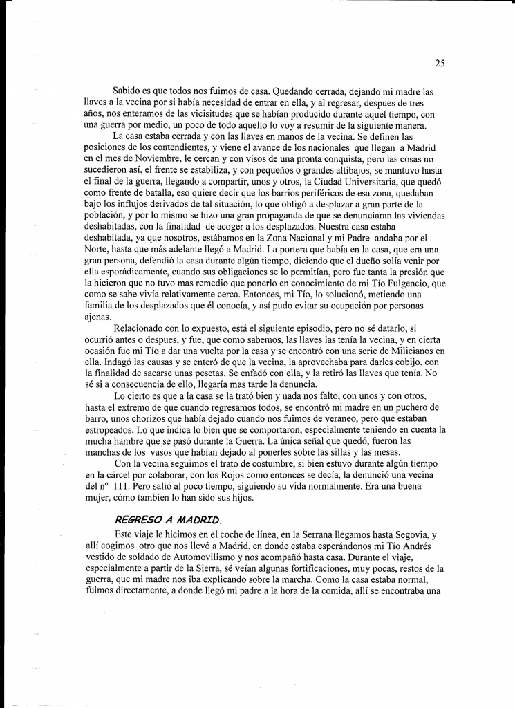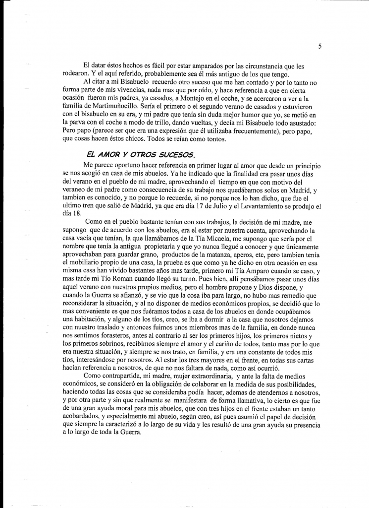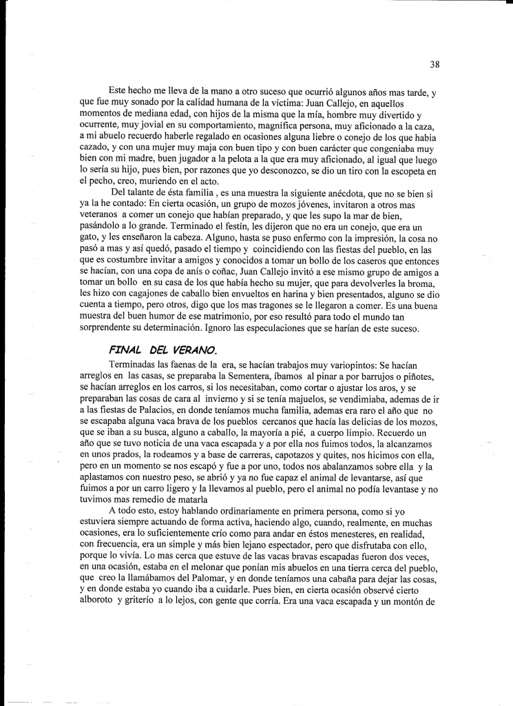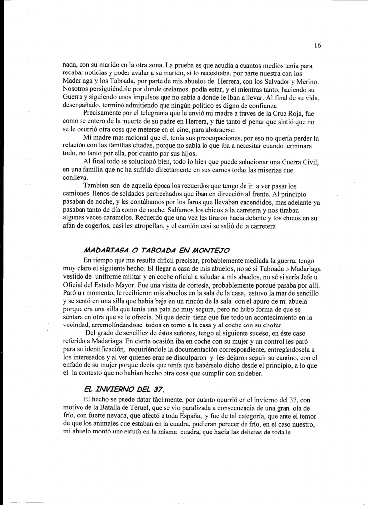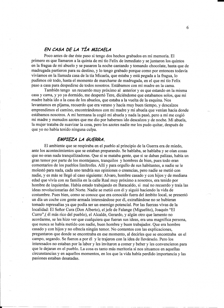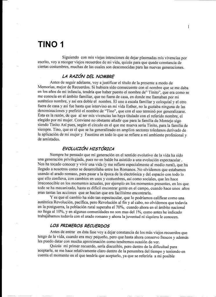 Como continuación al último relato, hoy comienzo con la inserción de los primeros folios que cuentan la historia que vivió otro niño en Montejo en los años de la Guerra Civil y, que como el propio cronista manifiesta, su intención es plasmar por escrito sus vivencias, recoger viejos recuerdos para que quede constancia de ciertas costumbres, muchas de las cuales seguramente sean desconocidas por las nuevas generaciones.