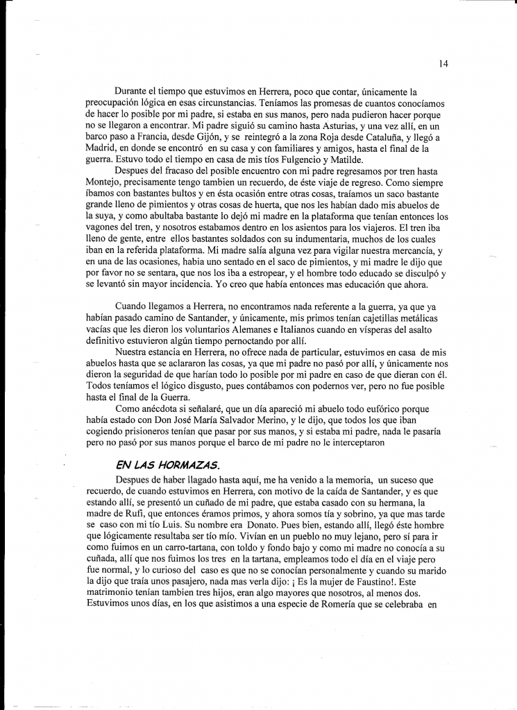 Espero poder contribuir, volver a dar «vida» a los recuerdos que Faustino López Herrero escribió para nosotros.